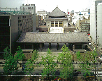 設計は建築家の岸田日出刀が担当し、和洋折衷のテイストを持つ鉄筋コンクリート造りの建物となった。規模は地下2階地上5階建てで延べ2万1697㎡。本堂の階下には結婚式場などが入る複合施設として活用されている。敷地は「かつて約6600坪あったが、相愛学園や御堂ビルが建ったことで、現在は約2200坪程度になった」(岡正寿副輪番)とのことだ。